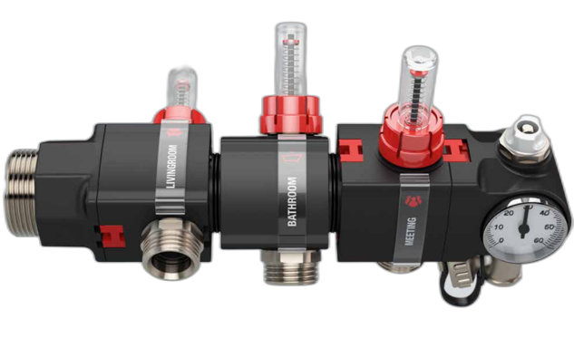 - handmatige kleppen metmicrometrischeflowmeters voor elk circuit
